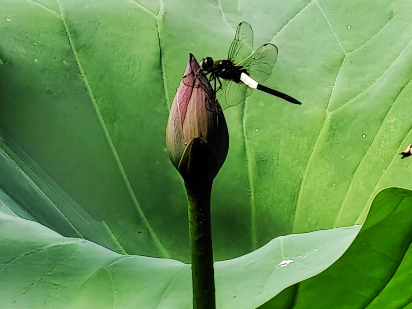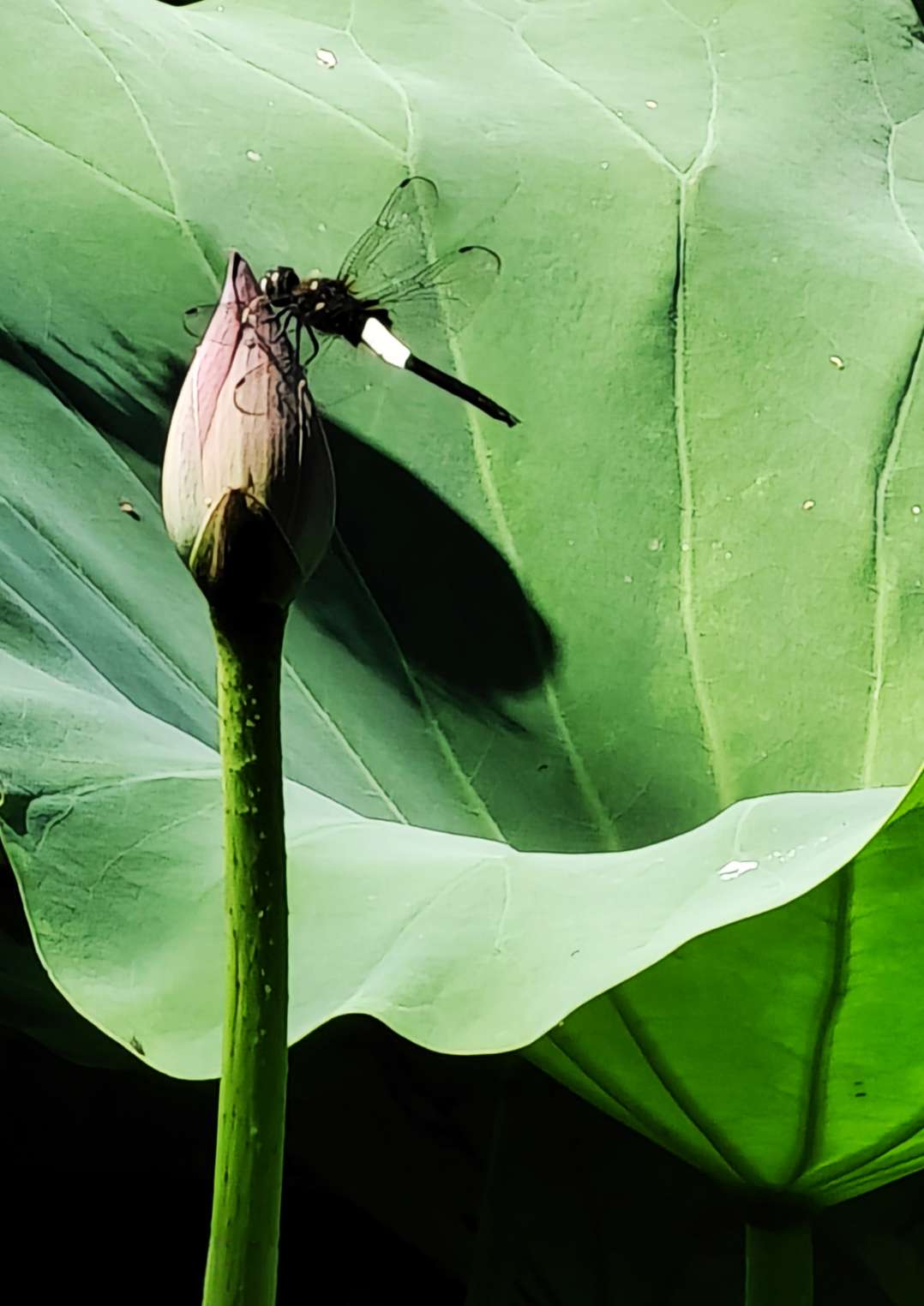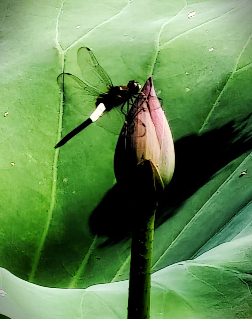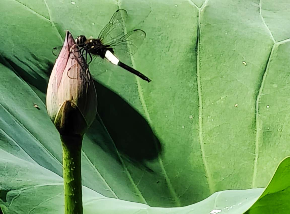 清晨,大明湖畔一只灵动的蜻蜓悄然落在莲花之上,寻得了最惬意的栖息之所,宛如在倾诉着绵绵情话。蜻蜓与莲花的相逢,恰似一场浪漫的偶遇,谱写了一段情意绵绵的佳话,这般美好值得被留存于诗画之间,化作永恒的景致。