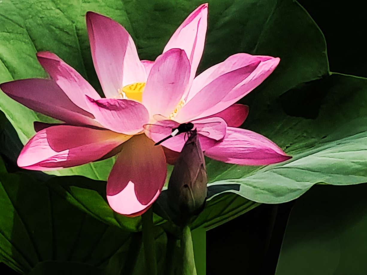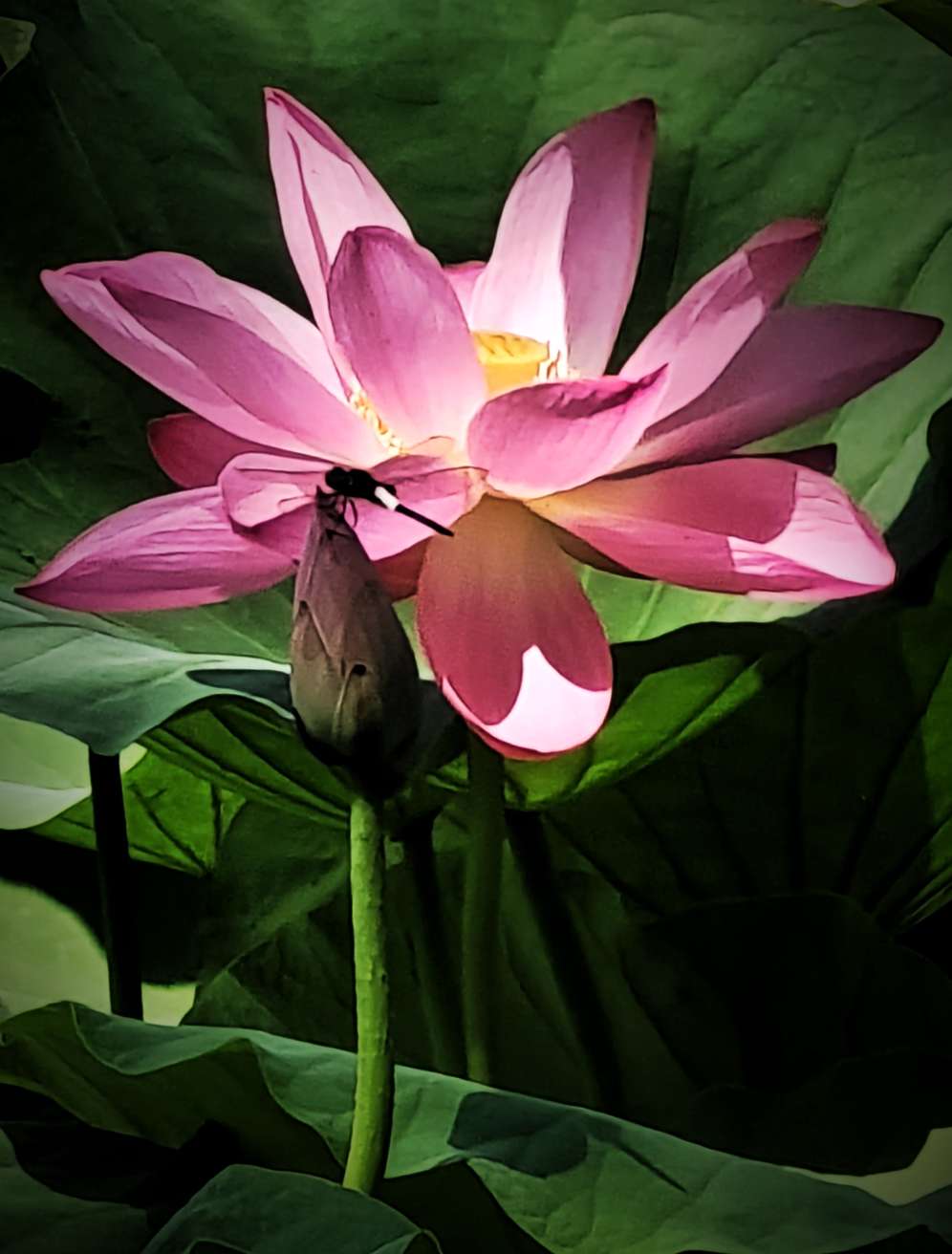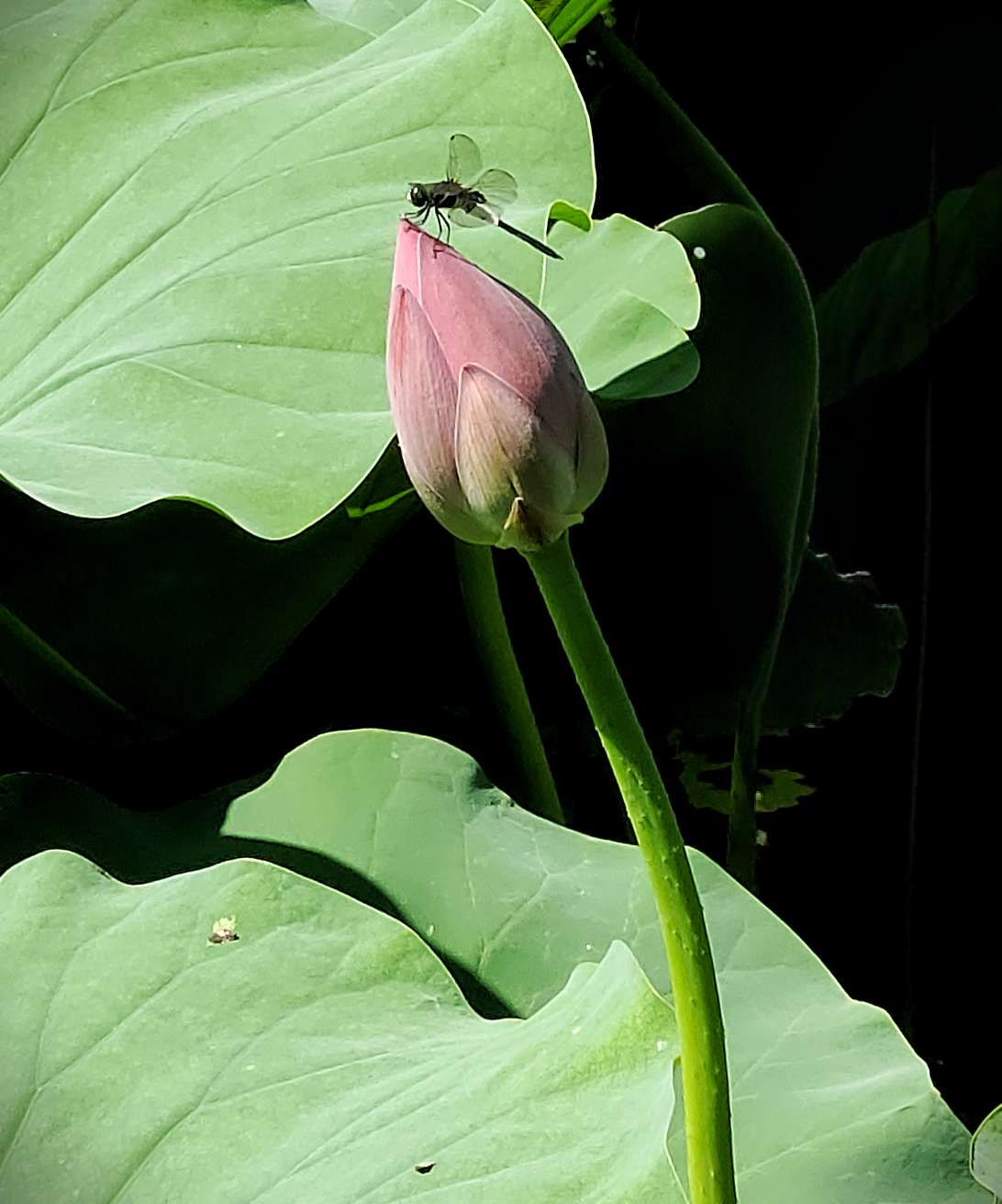 清晨,大明湖畔一只灵动的蜻蜓悄然落在莲花之上,寻得了最惬意的栖息之所,宛如在倾诉着绵绵情话。蜻蜓与莲花的相逢,恰似一场浪漫的偶遇,谱写了一段情意绵绵的佳话,这般美好值得被留存于诗画之间,化作永恒的景致。