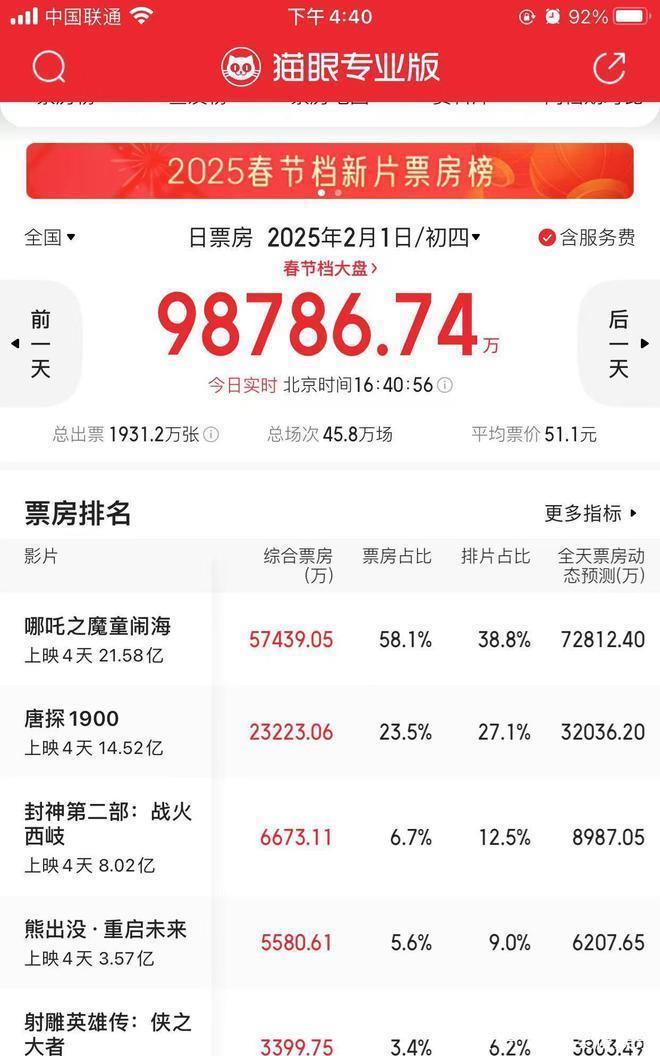 随着春节过半,春节档各大影片也逐渐显露真容,饺子凭借五年磨一剑的《哪吒之魔童闹海》以21亿的票房力压陈思诚的《唐探1900》稳居第一名,目前两部影片的票房已经相差6亿,而哪吒依旧后劲十足,可以说已经预定了今年春节档的冠军。